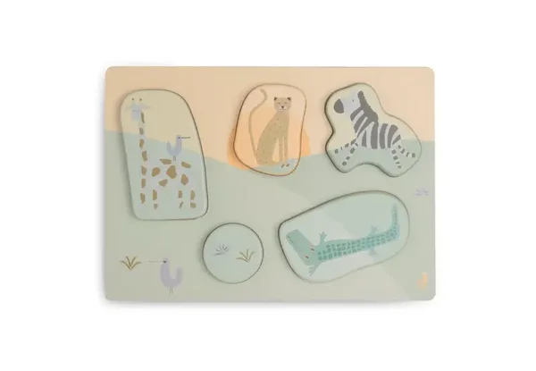 Laat je kleintje alle jungle dieren samenbrengen in deze leuke houten puzzel en geniet van urenlang speelplezier. Deze puzzel is ook voor kleintjes makkelijk in elkaar te zetten door de dikte van de puzzelstukken. In totaal bevat deze puzzel 5 puzzelstukken en al het hout in de puzzel is fsc 100% gecertificeerd, dat maakt dit een duurzame optie! Puzzelen maar.