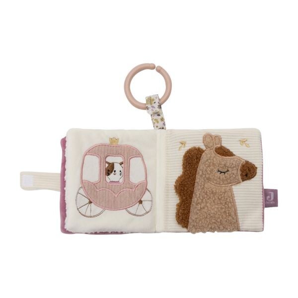 Laat je kindje spelenderwijs ontdekken met het Jollein Activiteitenboekje - Flower Fairies. Dit zachte stoffen boekje zit vol lieve details, vrolijke figuren en verschillende structuren. Denk aan een prinsessenkatje, een paard, bloemen, en zelfs een veilig spiegeltje om zichzelf in te bekijken. De zachte kleuren en sprookjesachtige illustraties maken het boekje extra aantrekkelijk voor kleine ontdekkers. Dankzij de handige bevestigingsring is het boekje eenvoudig vast te maken aan de kinderwagen, autostoel of box. Zo kan je kleintje overal genieten van speelplezier. Ideaal voor het stimuleren van tastzin, gehoor en visuele waarneming. Een perfect kraamcadeautje of aanvulling op de Flower Fairies-collectie van Jollein.