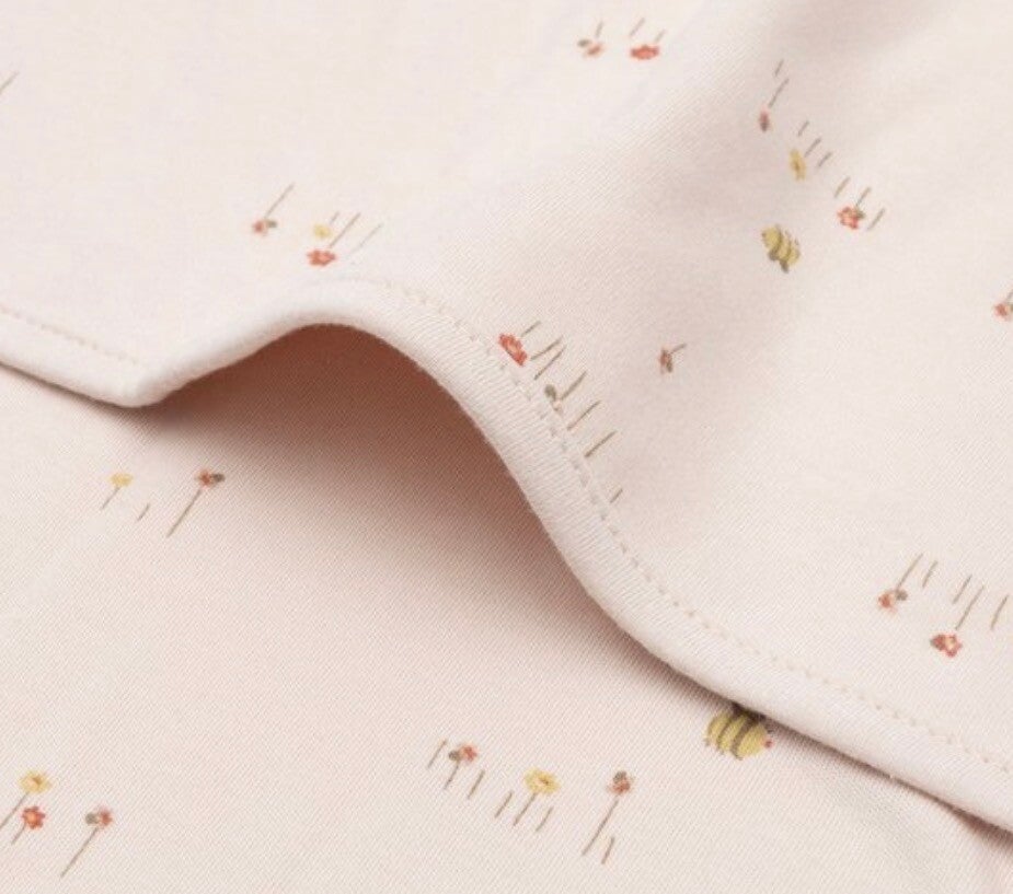 Dit lieve dekentje uit het Pretty Picnic thema is versierd met een all-over print van lieve bloemetjes en bijtjes op een Blush ondergrond. De zachte jersey stof en de rustige kleurencombinatie geven het dekentje een speelse en dromerige uitstraling. Perfect om het wiegje mee op te maken en eenvoudig te combineren met andere items uit het Pretty Picnic thema. Een tijdloze toevoeging aan de babykamer die zorgt voor een vleugje zachtheid en fantasie!